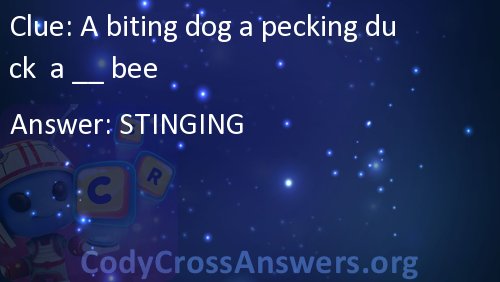 A biting dog a pecking duck a __ bee Answers