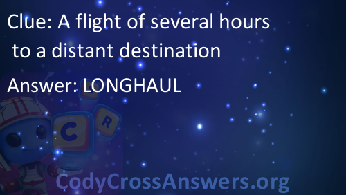 A flight of several hours to a distant destination Answers