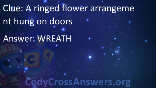 A ringed flower arrangement hung on doors Answers