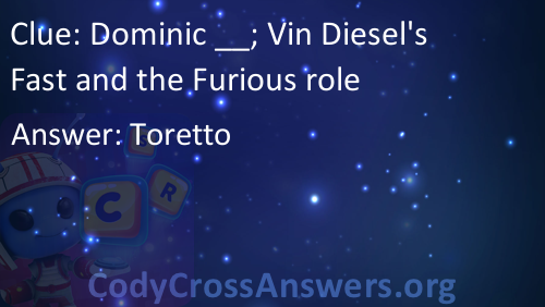 Dominic __; Vin Diesel's Fast and the Furious role Answers