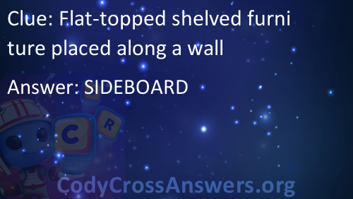 Flat-topped shelved furniture placed along a wall Answers