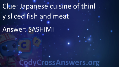 Japanese cuisine of thinly sliced fish and meat Answers