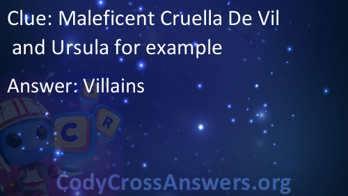 Maleficent Cruella De Vil and Ursula for example Answers