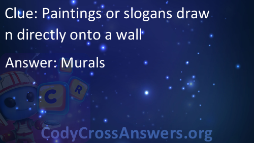 Paintings or slogans drawn directly onto a wall Answers