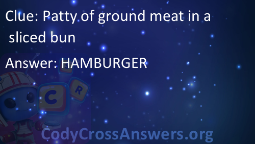 Patty of ground meat in a sliced bun Answers