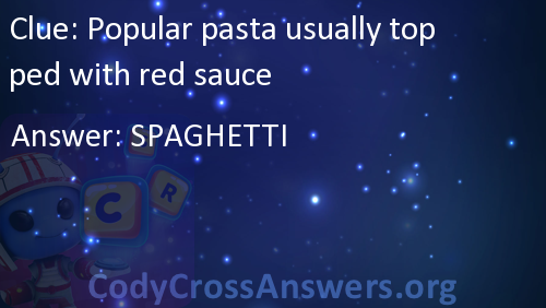 Popular pasta usually topped with red sauce Answers