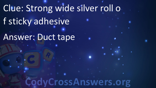 Strong wide silver roll of sticky adhesive Answers