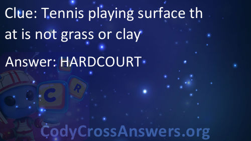 Tennis playing surface that is not grass or clay Answers