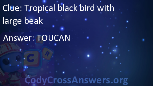 Tropical black bird with large beak Answers