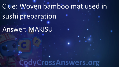 Woven bamboo mat used in sushi preparation Answers