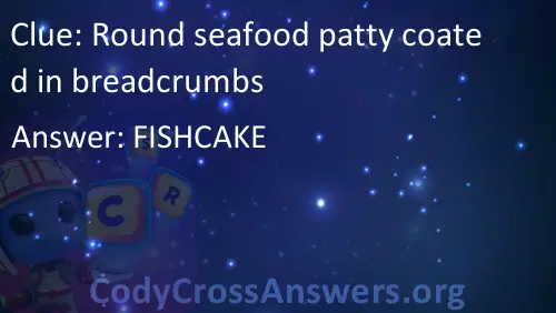 Round seafood patty coated in breadcrumbs Answers