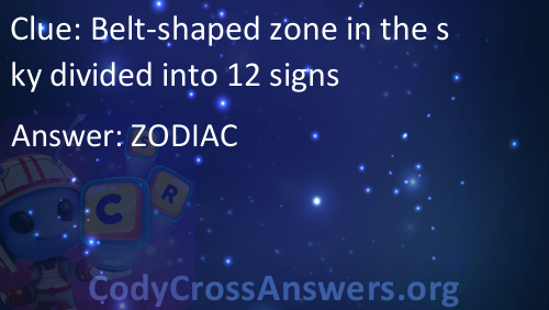 Belt-shaped zone in the sky divided into 12 signs Answers