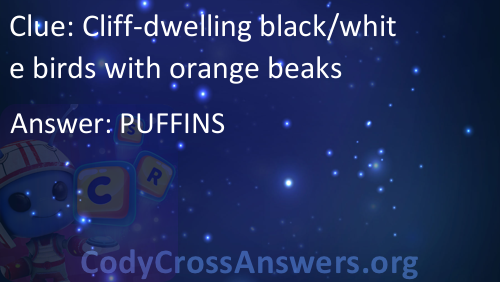 Cliff-dwelling black/white birds with orange beaks Answers