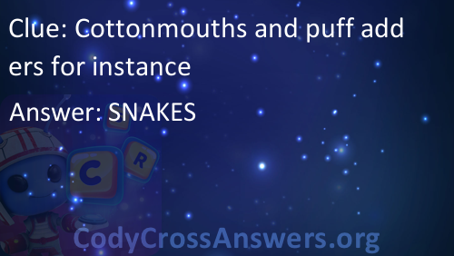 Cottonmouths and puff adders for instance Answers