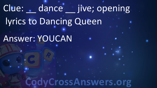 __ dance __ jive; opening lyrics to Dancing Queen Answers
