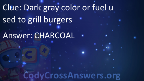 Dark gray color or fuel used to grill burgers Answers