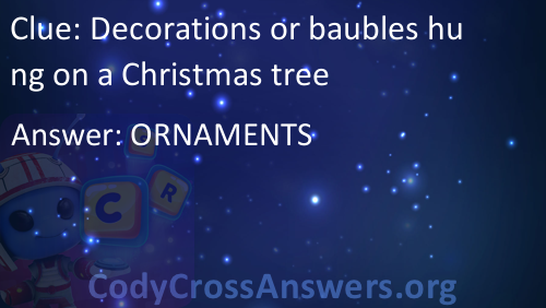 Decorations or baubles hung on a Christmas tree Answers