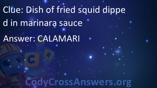 Dish of fried squid dipped in marinara sauce Answers