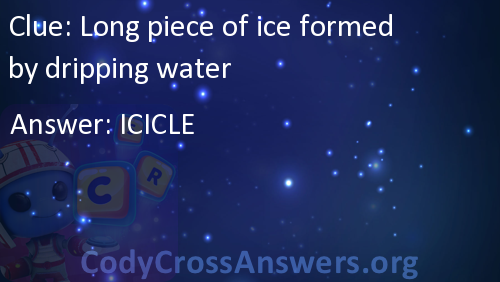 Long piece of ice formed by dripping water Answers
