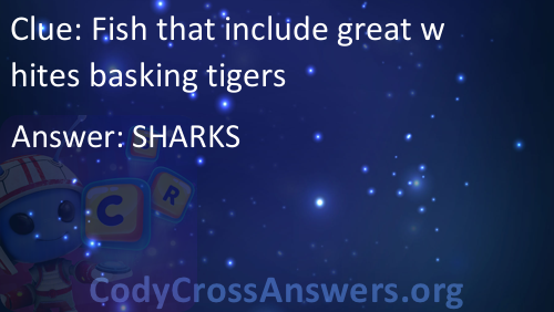 Fish that include great whites basking tigers Answers