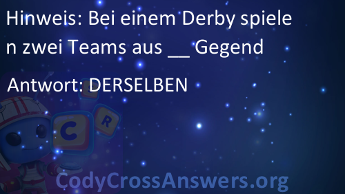 Bei einem Derby spielen zwei Teams aus __ Gegend Solution