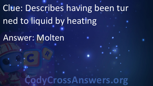 Describes having been turned to liquid by heating Solution