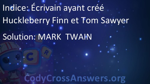 Écrivain ayant créé Huckleberry Finn et Tom Sawyer Solution