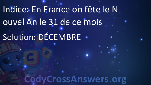 En France on fête le Nouvel An le 31 de ce mois Solution
