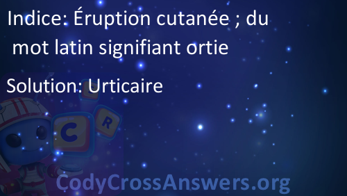 Éruption cutanée ; du mot latin signifiant ortie Solution