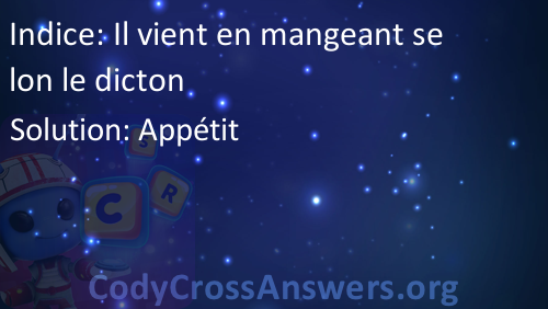 Il vient en mangeant selon le dicton Solution