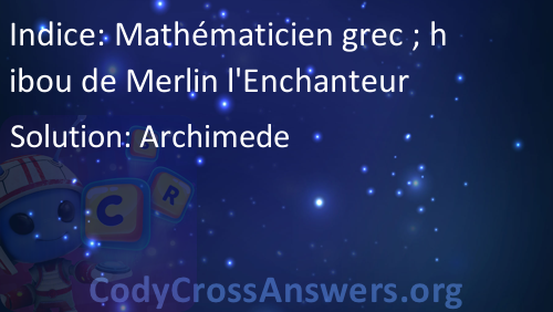 Mathématicien grec ; hibou de Merlin l'Enchanteur Solution