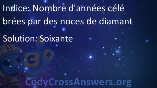 Nombre d'années célébrées par des noces de diamant Solution