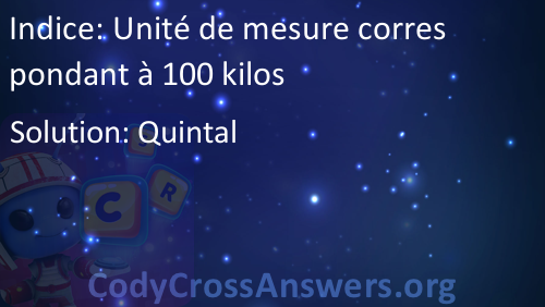 Unité de mesure correspondant à 100 kilos Solution