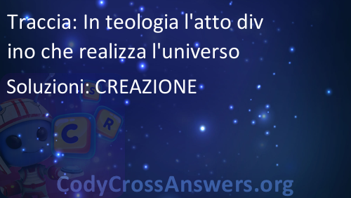 In teologia l'atto divino che realizza l'universo Soluzioni