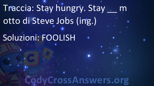 Stay hungry. Stay __ motto di Steve Jobs (ing.) Soluzioni
