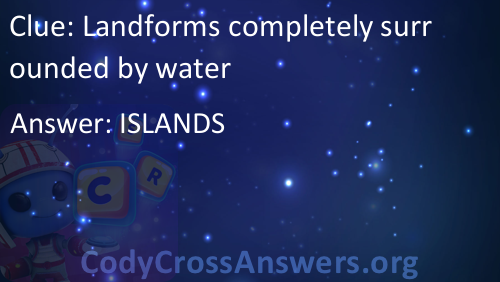Landforms completely surrounded by water Answers