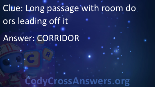 Long passage with room doors leading off it Answers