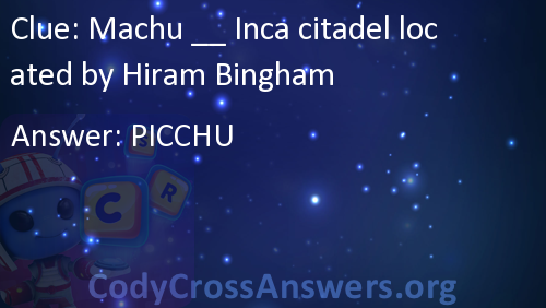 Machu __ Inca citadel located by Hiram Bingham Answers