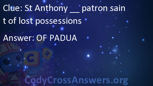 St Anthony __ patron saint of lost possessions Answers