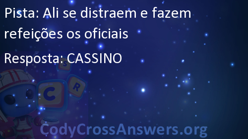 CodyCross é um famoso jogo recentemente lançado, desenvolvido pela Fanatee. Tem muitas palavras cruzadas divididas em diferentes mundos e grupos. Cada mundo tem mais de 20 grupos com 5 enigmas cada. Alguns dos mundos são: Planeta Terra, Sob O Mar, Invenções, Estações, Circo, Transportes e Artes Culinárias.
