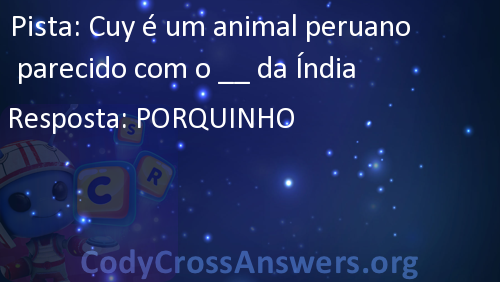 Cuy é um animal peruano parecido com o __ da Índia Respostas