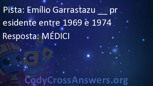 Emílio Garrastazu __ presidente entre 1969 e 1974 Respostas
