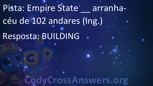 Empire State __ arranha-céu de 102 andares (ing.) Respostas
