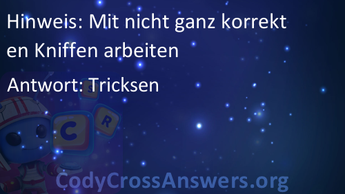 CodyCross é um famoso jogo recentemente lançado, desenvolvido pela Fanatee. Tem muitas palavras cruzadas divididas em diferentes mundos e grupos. Cada mundo tem mais de 20 grupos com 5 enigmas cada. Alguns dos mundos são: Planeta Terra, Sob O Mar, Invenções, Estações, Circo, Transportes e Artes Culinárias.