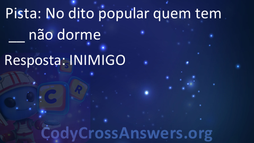 CodyCross é um famoso jogo recentemente lançado, desenvolvido pela Fanatee. Tem muitas palavras cruzadas divididas em diferentes mundos e grupos. Cada mundo tem mais de 20 grupos com 5 enigmas cada. Alguns dos mundos são: Planeta Terra, Sob O Mar, Invenções, Estações, Circo, Transportes e Artes Culinárias.
