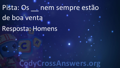 CodyCross é um famoso jogo recentemente lançado, desenvolvido pela Fanatee. Tem muitas palavras cruzadas divididas em diferentes mundos e grupos. Cada mundo tem mais de 20 grupos com 5 enigmas cada. Alguns dos mundos são: Planeta Terra, Sob O Mar, Invenções, Estações, Circo, Transportes e Artes Culinárias.
