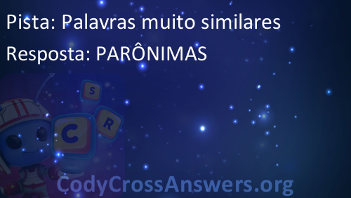 CodyCross é um famoso jogo recentemente lançado, desenvolvido pela Fanatee. Tem muitas palavras cruzadas divididas em diferentes mundos e grupos. Cada mundo tem mais de 20 grupos com 5 enigmas cada. Alguns dos mundos são: Planeta Terra, Sob O Mar, Invenções, Estações, Circo, Transportes e Artes Culinárias.