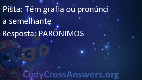 CodyCross é um famoso jogo recentemente lançado, desenvolvido pela Fanatee. Tem muitas palavras cruzadas divididas em diferentes mundos e grupos. Cada mundo tem mais de 20 grupos com 5 enigmas cada. Alguns dos mundos são: Planeta Terra, Sob O Mar, Invenções, Estações, Circo, Transportes e Artes Culinárias.