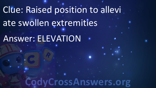 Raised position to alleviate swollen extremities Answers