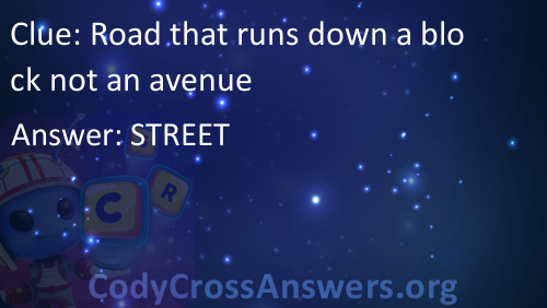 Road that runs down a block not an avenue Answers